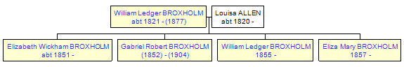 License obtained for marriage to William Ledger BROXHOLM.1 |